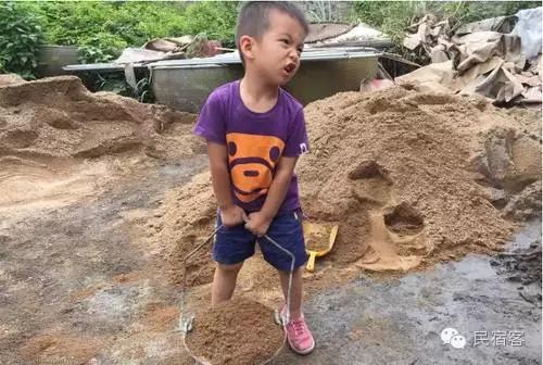 老公老婆兒子齊上陣,吃土搬磚個個搞得灰頭土臉。