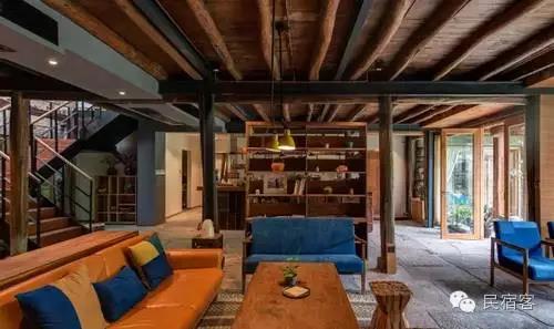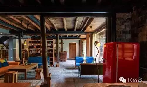 老木柱、老房梁,但是有鮮艷顏色的冰箱、家具和現代設計語言去對話,于是這里就成了一個適合現代人的“遠方”。