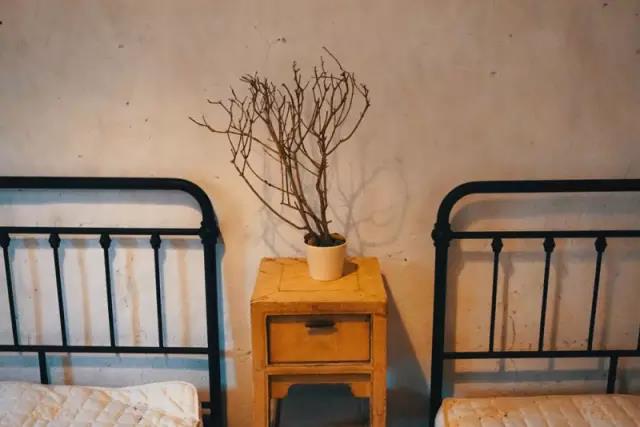 客房里兩張鐵藝床,