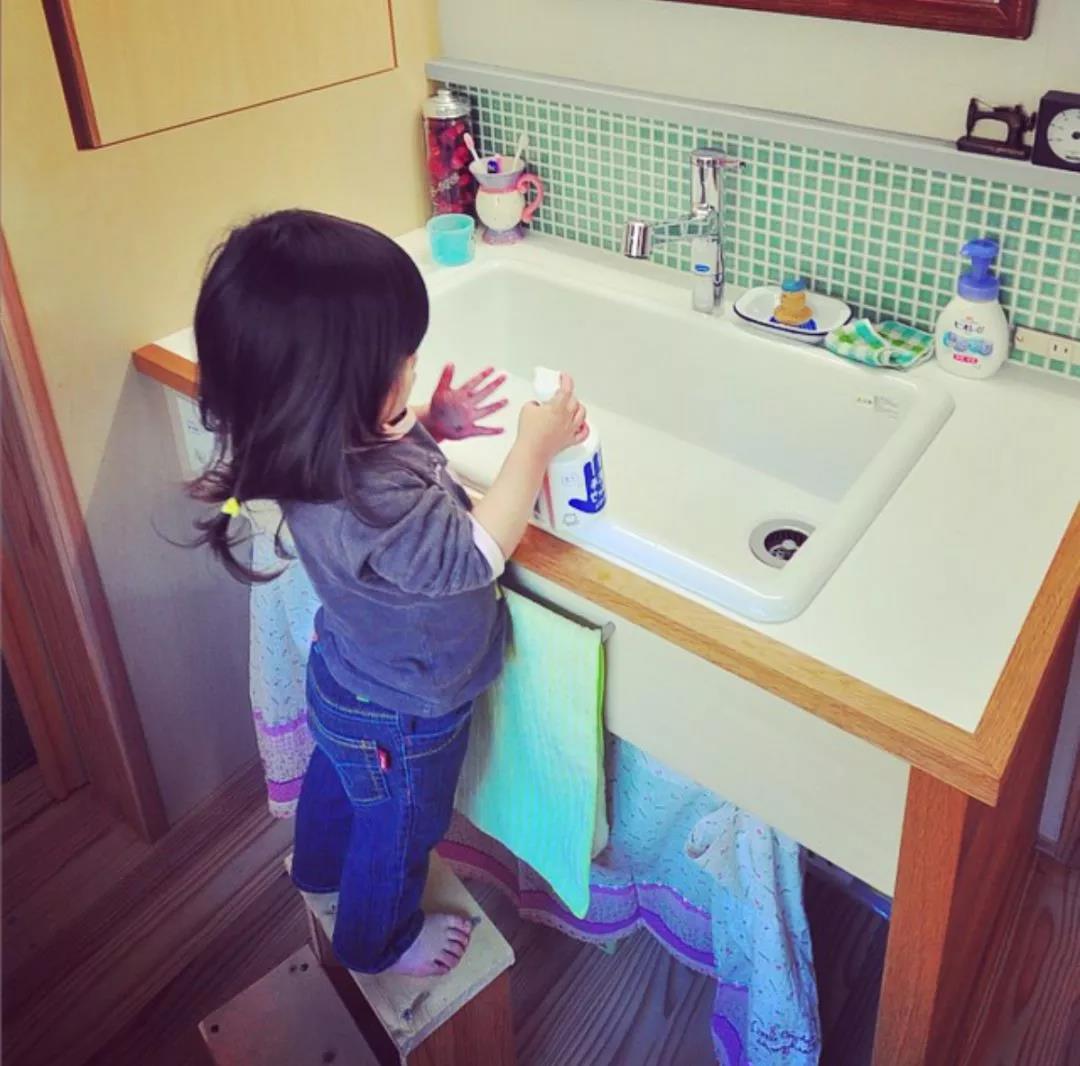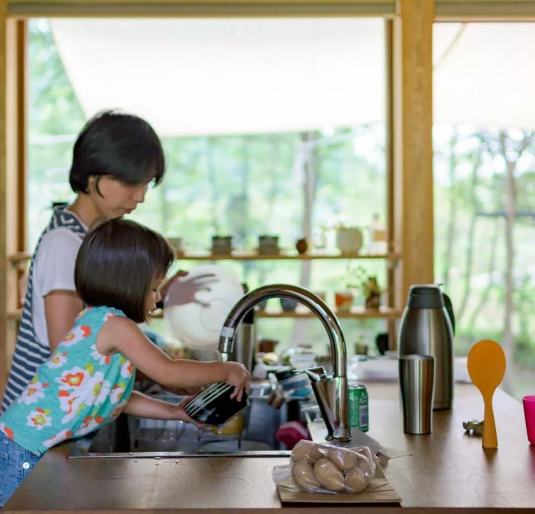 除了讓孩子們從大自然中學習知識,在生活中,kagae夫妻 也很注重對孩子好習慣的培養。
