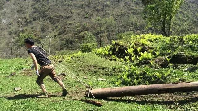 把一根根木料拉到山頂。