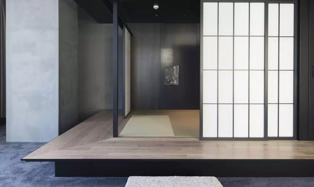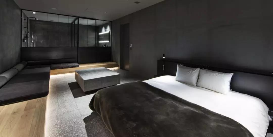 酒店的房間內是一種性冷淡的風格,以木制品與黑色元素相互碰撞,創造出一種具有禪意的深沉意境。