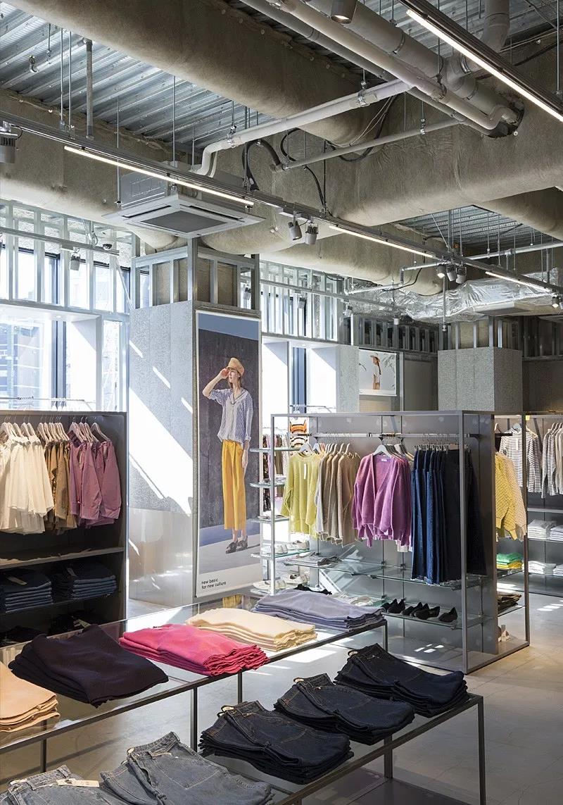 二樓的店鋪風格以工業風的裝潢為主,天花板裸露的屋梁與鐵管,充滿著一種冰冷的工業感,非常有時尚味道。