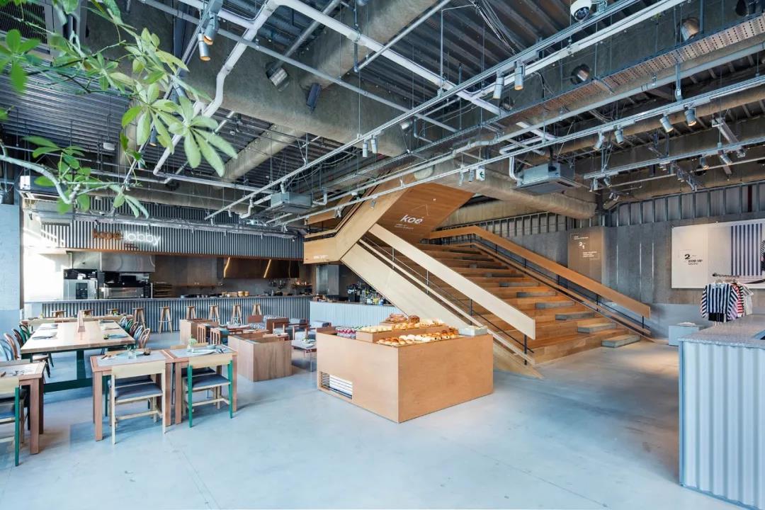 展演廳有著巨大的上下層臺階式座位,在這里經常舉辦音樂演出、藝術展覽、公益等等活動,也是 Koe 生活方式的一種體現。