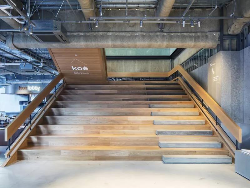 Hotel Koe 的一樓二樓采用木制品為主,以時尚店鋪為中心兼設酒店、飲食店,將衣食住三個元素融入其中,設計師打造了「Hotel in Shop」的新理念。