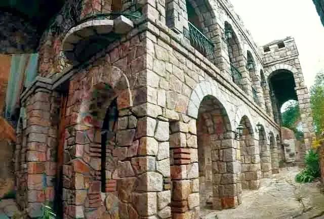 施工期間所有石塊全部純手工打磨,沒有任何現代機械參與打磨。依山而建,路面是一整塊石基,讓最自然而然的原始相貌呈現。城堡的建筑體包含(一百多個拱,雙子窗有二,塔樓,箭樓,透景樓,天亭,大露臺,瀑布,酒吧,天然山體酒窖)。