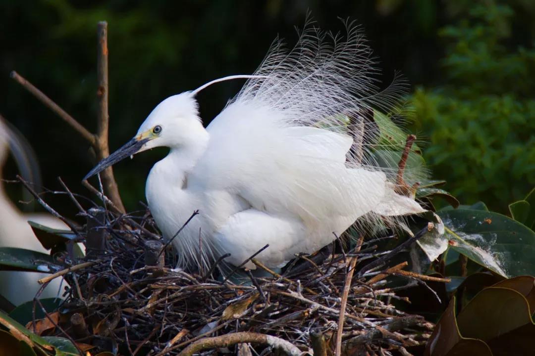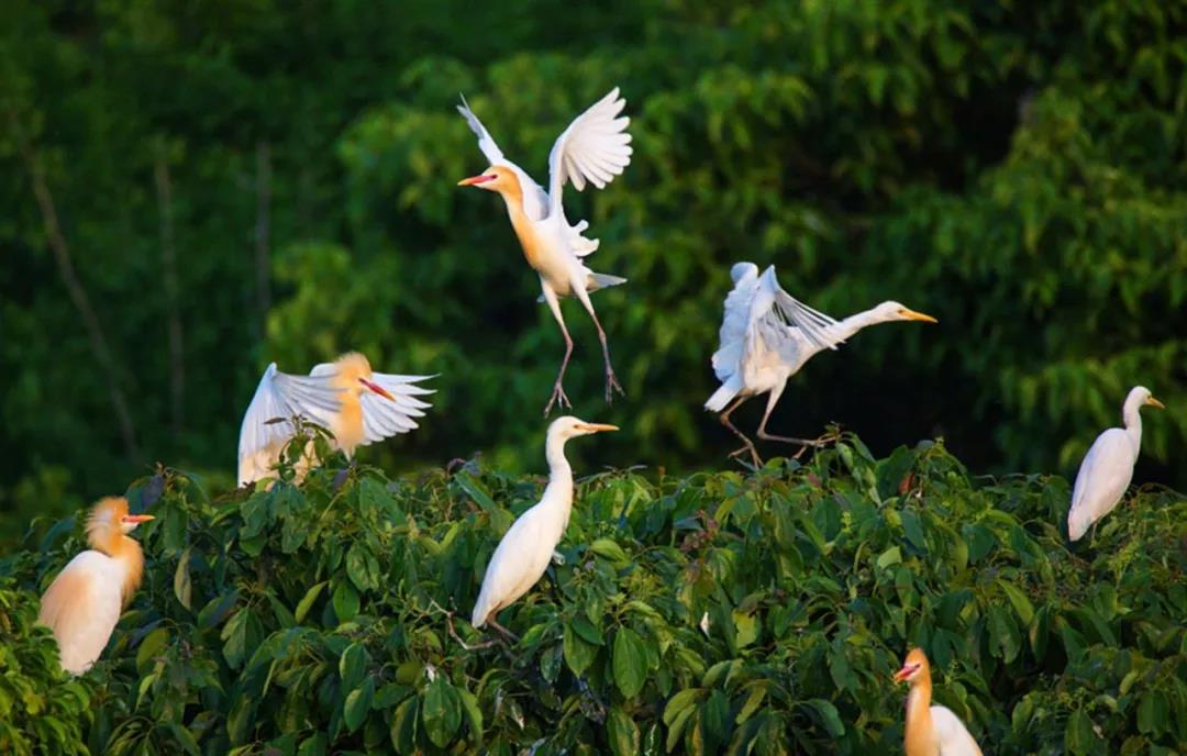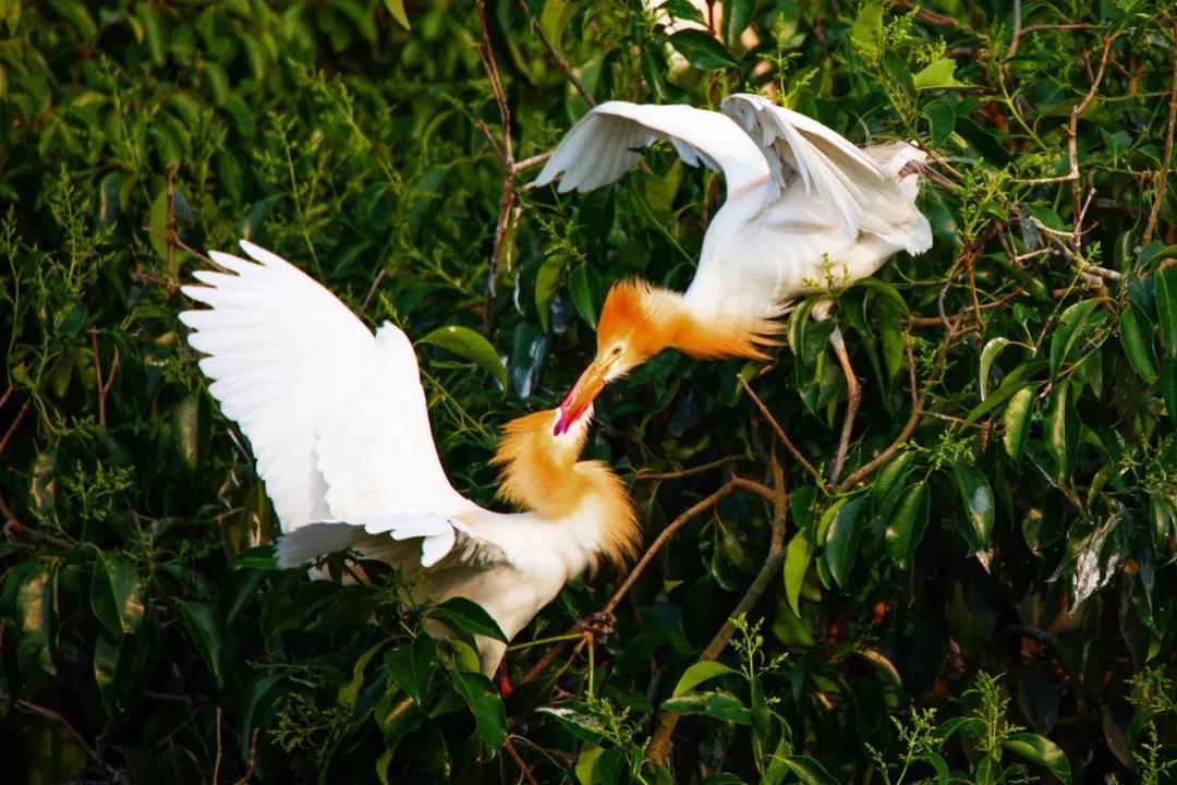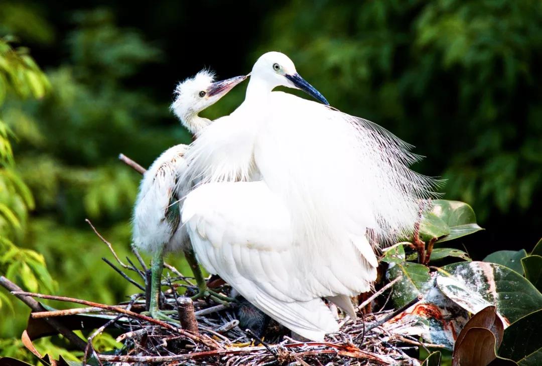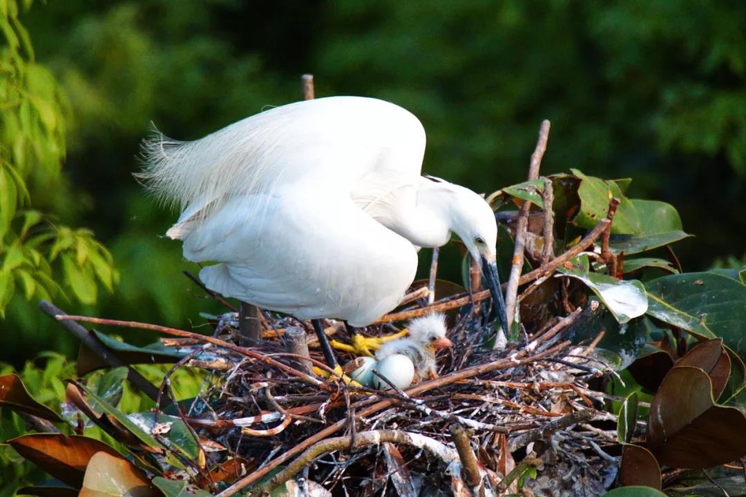 樹林里主要是白鷺、牛背鷺、夜鷺、池鷺。它們每年春天飛來繁衍,秋天離開,有些老弱病殘會繼續(xù)留下來過冬。