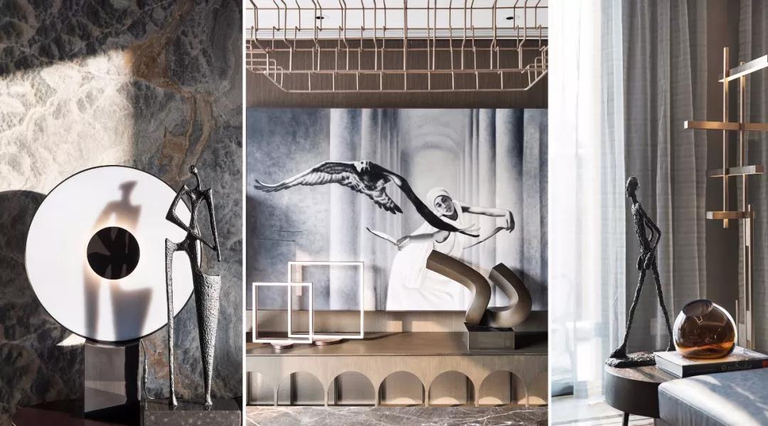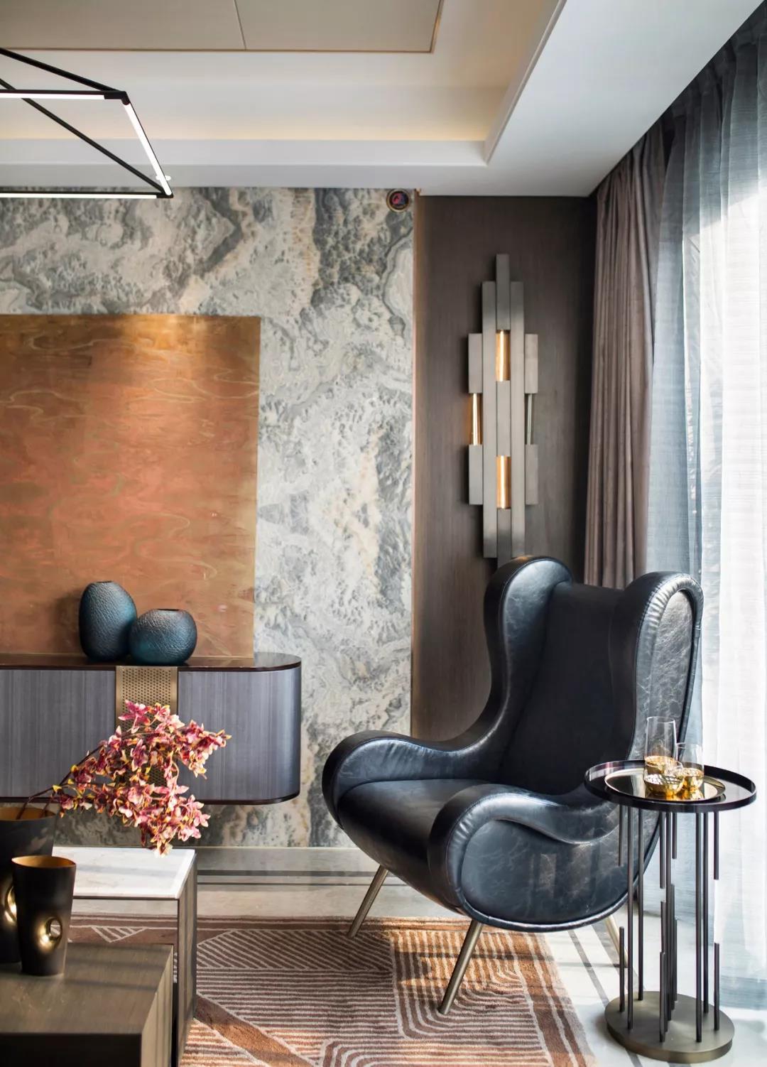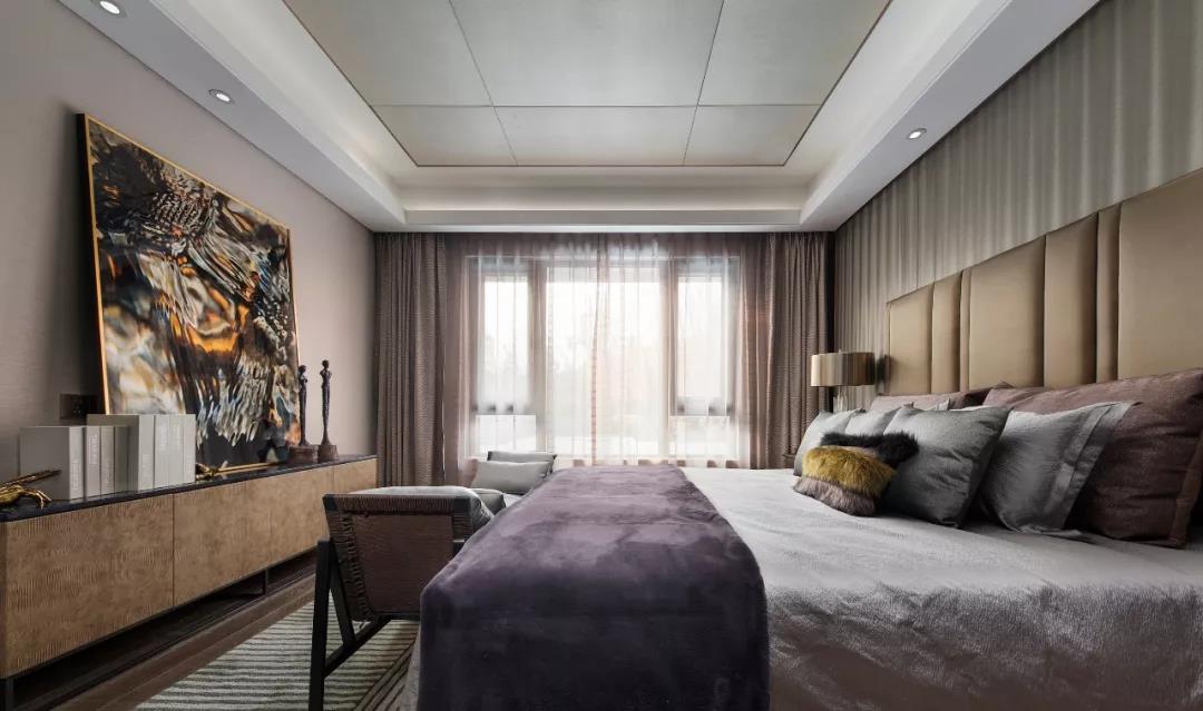 主臥設(shè)計(jì)體現(xiàn)了優(yōu)雅的藝術(shù)品位,整體空間層次豐富且有序,具象和抽象的交織扭結(jié),碰撞出嶄新的空間想象,在嚴(yán)謹(jǐn)理性中涂抹上輕松瀟逸的一筆。