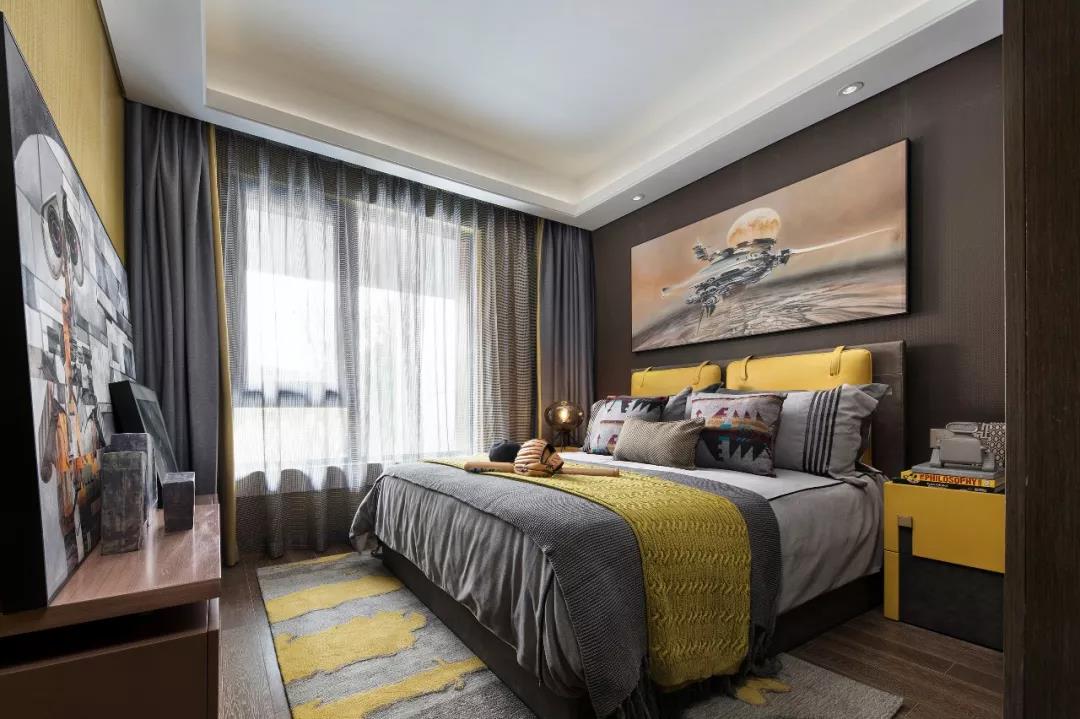 男孩房以活潑跳躍的******為主調(diào),高級灰的置入,平衡了空間視覺呈現(xiàn)效果,極具未來感的裝飾畫,賦予了空間更多的趣味因子。