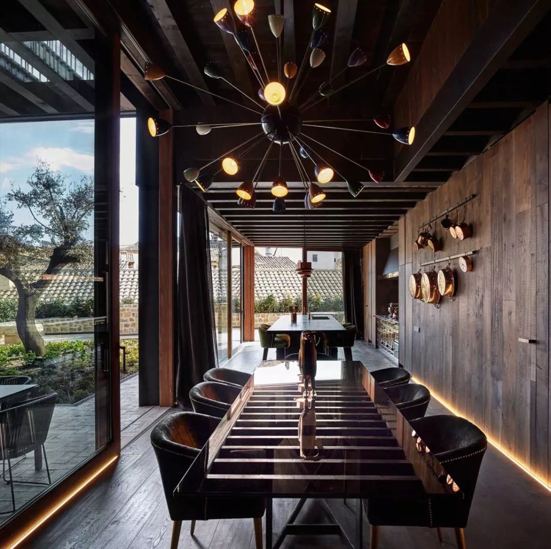 室內設計以復古風格為主,通過木頭天花板和石磚墻體的配合,先營造出古老的藝術氣氛,再通過軟裝的陳列搭配,將空間內的精致感展現出來。