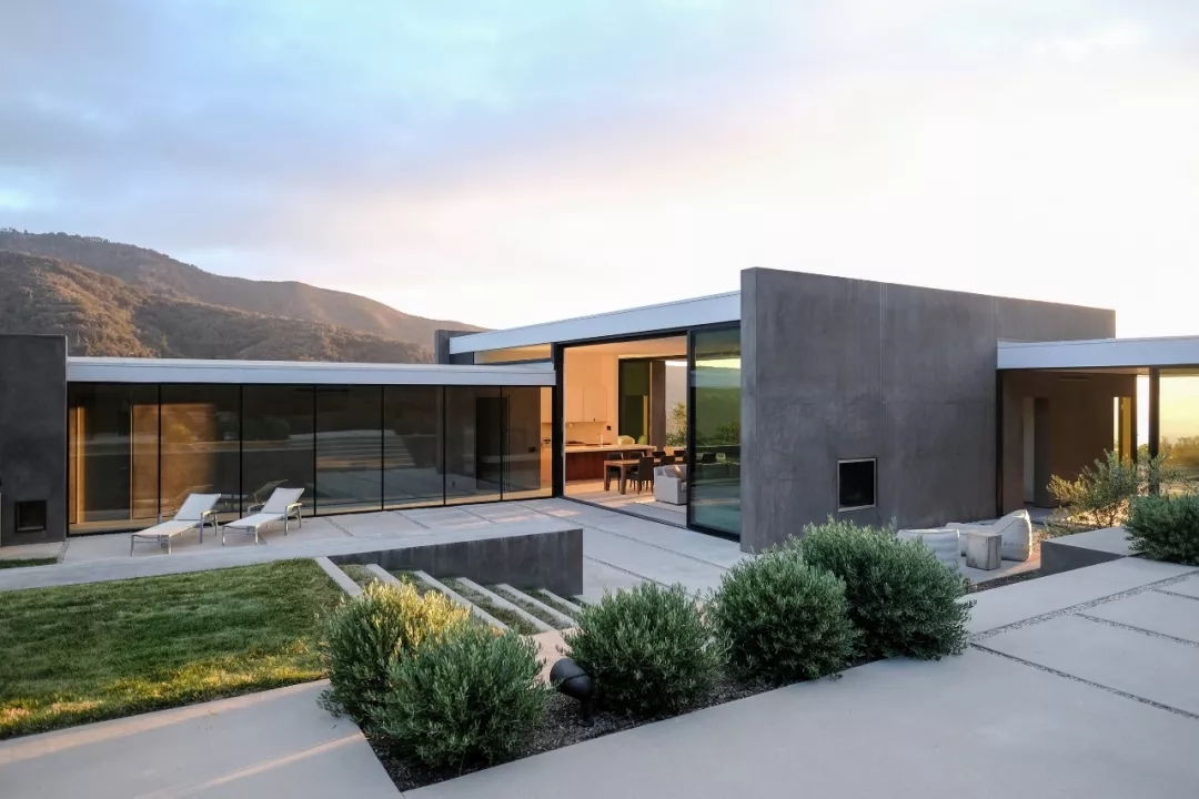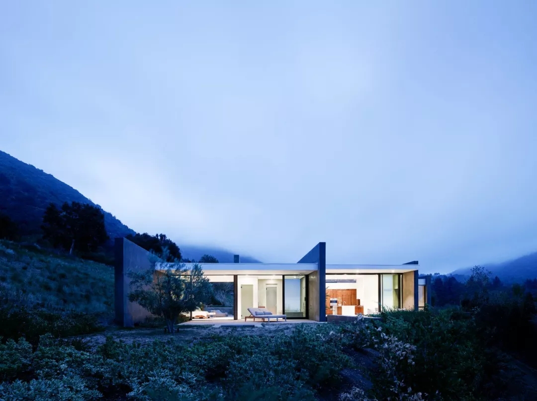 這棟別墅位于美國圣貝納迪諾國家森林山腳下,約300平方米, 該設(shè)計采用了加厚的墻壁,厚重而樸質(zhì)的墻壁沿著山脈的地形向東西方向延伸,防止室內(nèi)受到強烈陽光的照射。