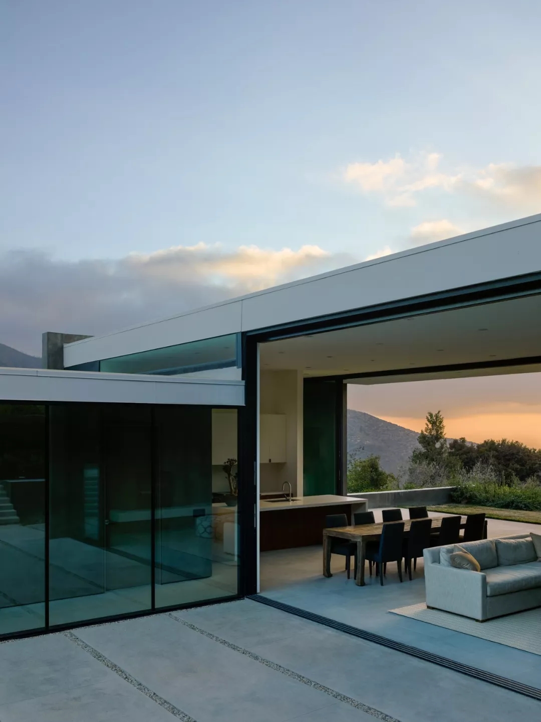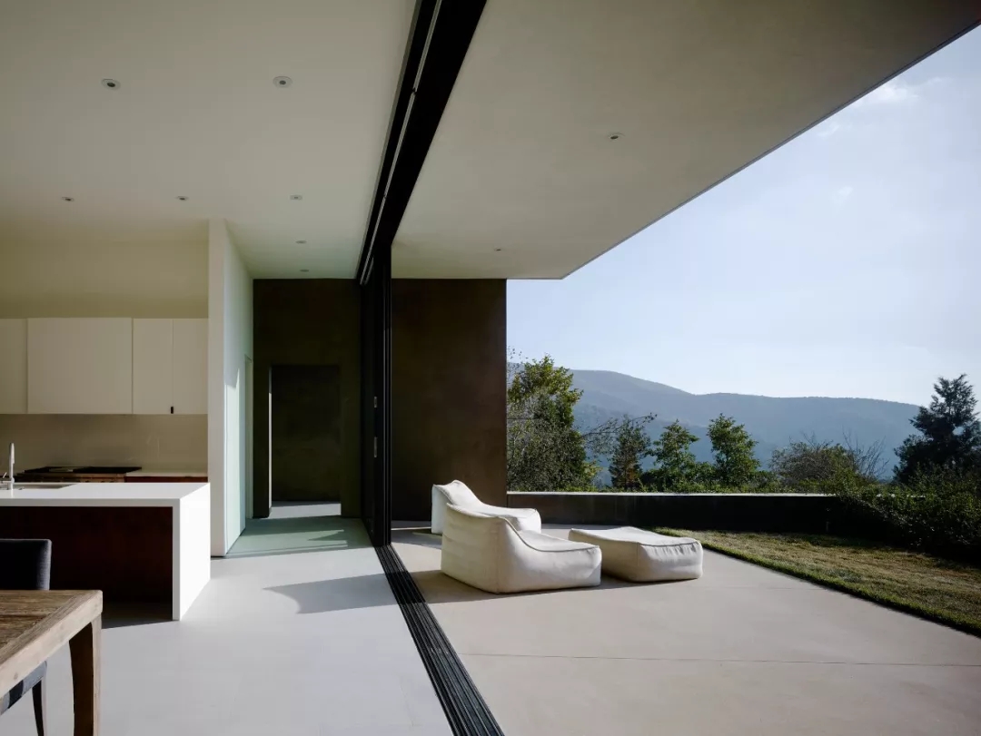 建筑師打造全敞開式的設(shè)計,室內(nèi)空間與陽臺間的推拉門打開以后,如同置身于周圍美妙的美景之中。