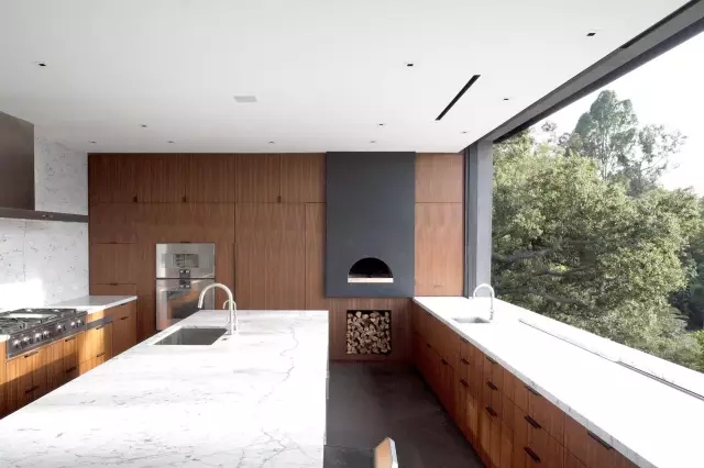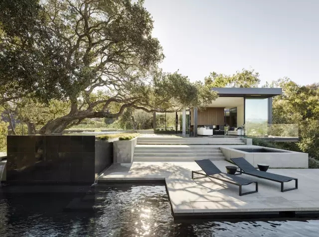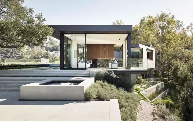 位于比弗利山莊的別墅項目,采用了下沉庭院的設(shè)計手法,巧妙地將樹、景、建筑、山林融匯于迷人的現(xiàn)代設(shè)計中。美好的設(shè)計,讓我們看到了融于建筑的自然景觀,這也許就是真正的一座房子,美了一片山林!