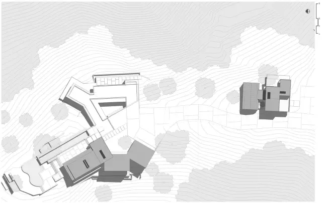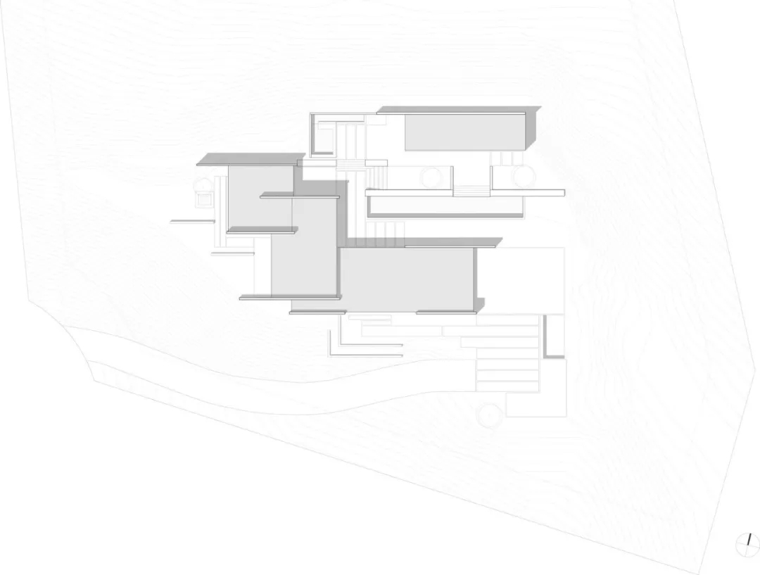 山林的膚色因這棟房子而變得親切,以黑白灰的質(zhì)感和諧地融入,給予了山林更多生命的氣息。