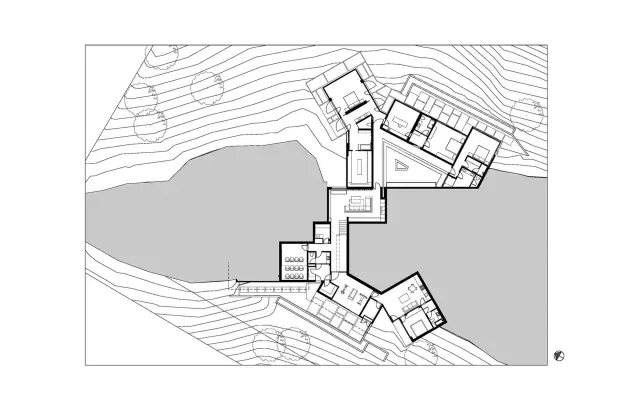建筑師為了延續(xù)山林的原始元素,整個設(shè)計很好地保留了房子周邊的景觀與樹木,堅持不毀掉一棵樹的設(shè)計理念,營造了非常和諧的生態(tài)氣息。