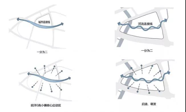 前洋E商小鎮位于寧波江北區的北大門,是寧波北高速進入寧波的第一站,也是直通杭州、上海直通寧波老城區的重要門戶形象。它不僅是江北的創新產業集聚的示范區,也是寧波電商小鎮的核心組成。同時,這里也沒有沉重的歷史文脈包袱,可以對空間進行大膽的創意制造形成現城市意志并且引領未來的科技感的建筑。無論在地理位置還是功能形態上都完美契合地標建筑的要求。項目南北東三個方向被大尺度城市干道環繞,西邊有觀山河,是京杭大運河自然保護區,地塊最大高度被嚴格限制在50m。同時,7萬方的用地中部還被山下沈河自然割裂,南北地塊聯系薄弱。破碎,散落的地塊組織,很難讓建筑在單體規模上有所突破。也正因為此,項目無法朝著傳統型地標一樣以“高度”“規模”“精致”為設計主軸,非典型性的設計也是必然之所趨。