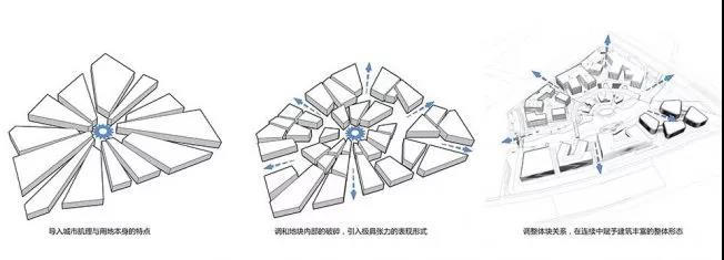 ▼以中心景觀為“爆炸質點”,周圍建筑呈碎片形式散落