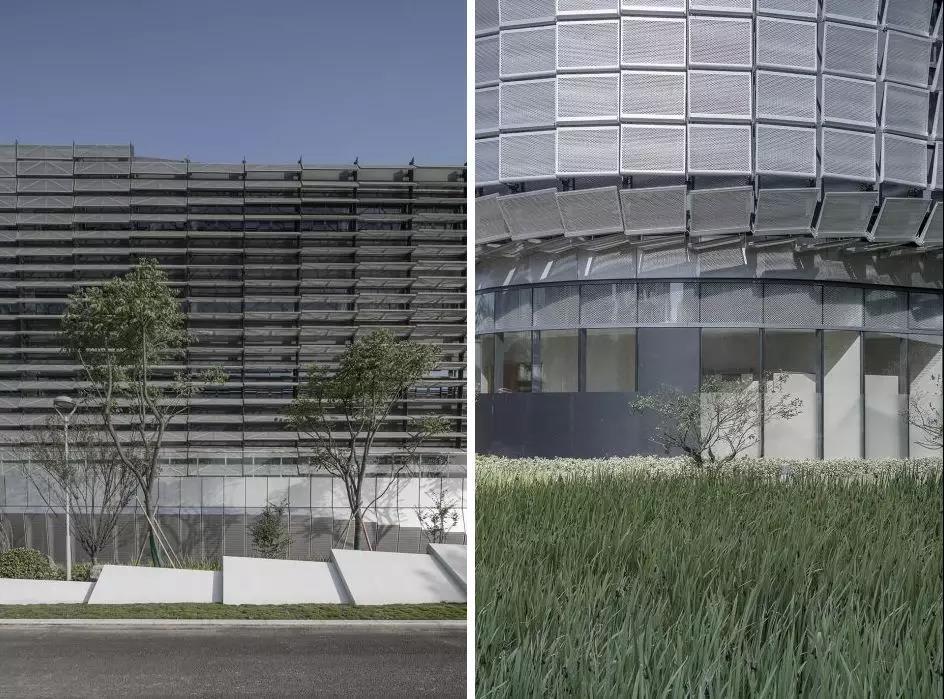 每個建筑師都希望能對自己設計的建筑作品精雕細琢慢慢打磨,充分考慮所有細節力圖達到點滴間的完美。然而留給左右建筑的時間并不寬裕,這個七萬方的項目從中標到預計的交付時間,滿打滿算也只有550個日夜,并且設計的過程中還需要給未來招商預留余地。時間之緊迫,工程之宏大,使得左右的建筑師們放棄了向下挖掘地下室的想法,取而代之的把車庫直接設置在了板塊的地面一層。這個做法大大縮短了工期。地面車庫不僅提供了更好的自然通風條件和舒適的自然光線,也簡化了交通流線,給業主更優質的停車體驗。除了南北幾個板塊的地面一層,在園區的西南角還安置了一個地面塔庫,另外提供近400個立體停車位。地塊實際配置了887個機動車位,在無地下停車場的情況下大大超出了要求配置的719個機動車位。更重要的是,無向下挖掘的設計保存了臨水地塊作為“海綿生態項目”的儲水能力。