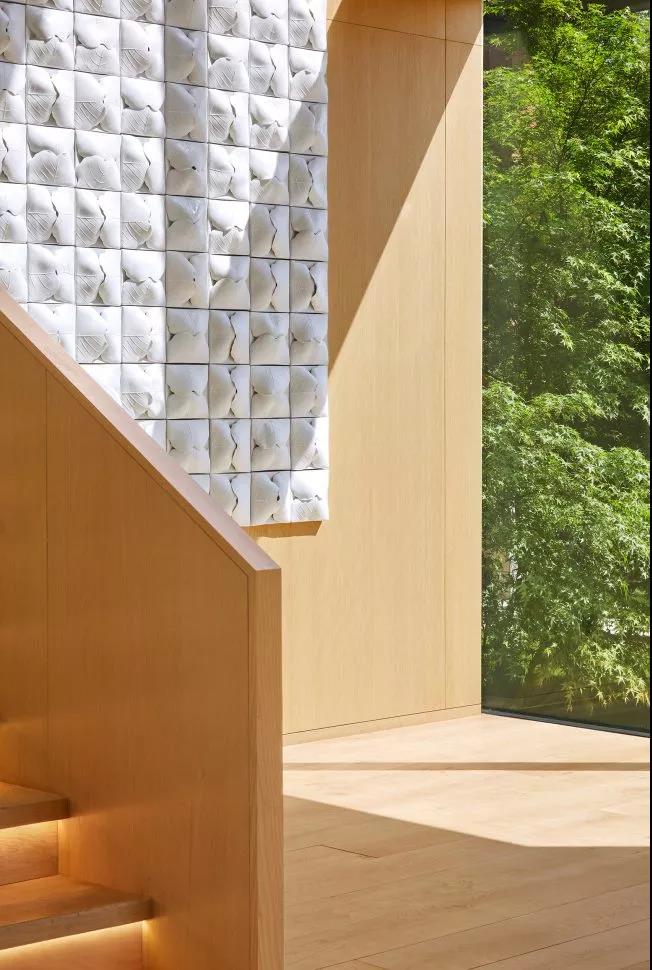 設計的過程中,把建筑作為一種詩意的想象,盡力在作品中滲透對于人性孤獨的泰然自若。我們刻意回避了偏商務的色調,使得進入空間的人有一種賓至如歸的感覺。極少主義很容易走向高冷,為了避免冷漠,注重材料的色彩和質地,一方面,選擇了很淺很淡的木飾面和地板,使得整體的空間氛圍顯得輕松自在;另一方面,引入“透光的紙”,讓光線顯得柔和與溫暖,顯得“很歡迎”。這一切所得均來自于一次與業主的談話:“我希望這個空間像人!一個沒有軟肋但也沒有鎧甲的人,雅致而且從容!”