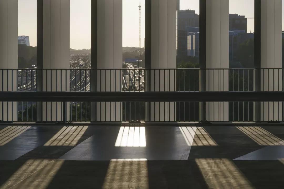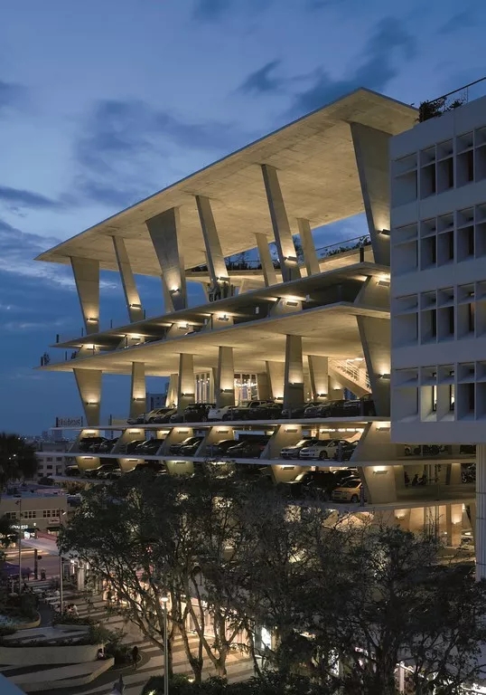 巨大的預(yù)制混凝土構(gòu)件將螺旋塔樓與主體停車(chē)場(chǎng)相連接