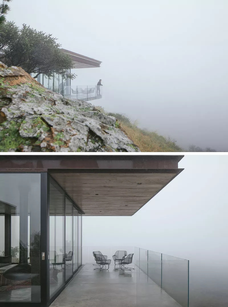 在這座房子里,可以通過滑動玻璃墻和寬闊的甲板看到太平洋,站在透明的玻璃甲板上,像是漂浮在朦朧唯美的大自然里。