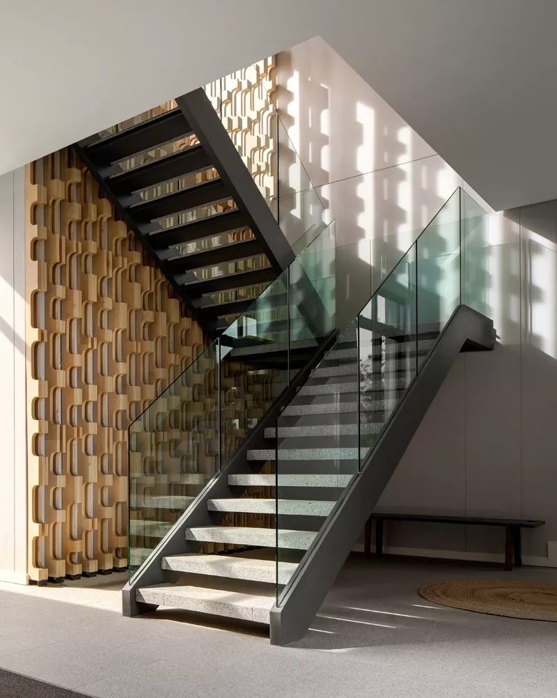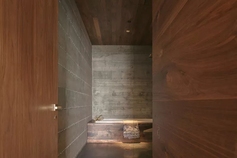 內部空間選擇了鋼,混凝土和玻璃的簡單材料構成,材質的色彩和質感與外面的景觀形成了無縫融合。