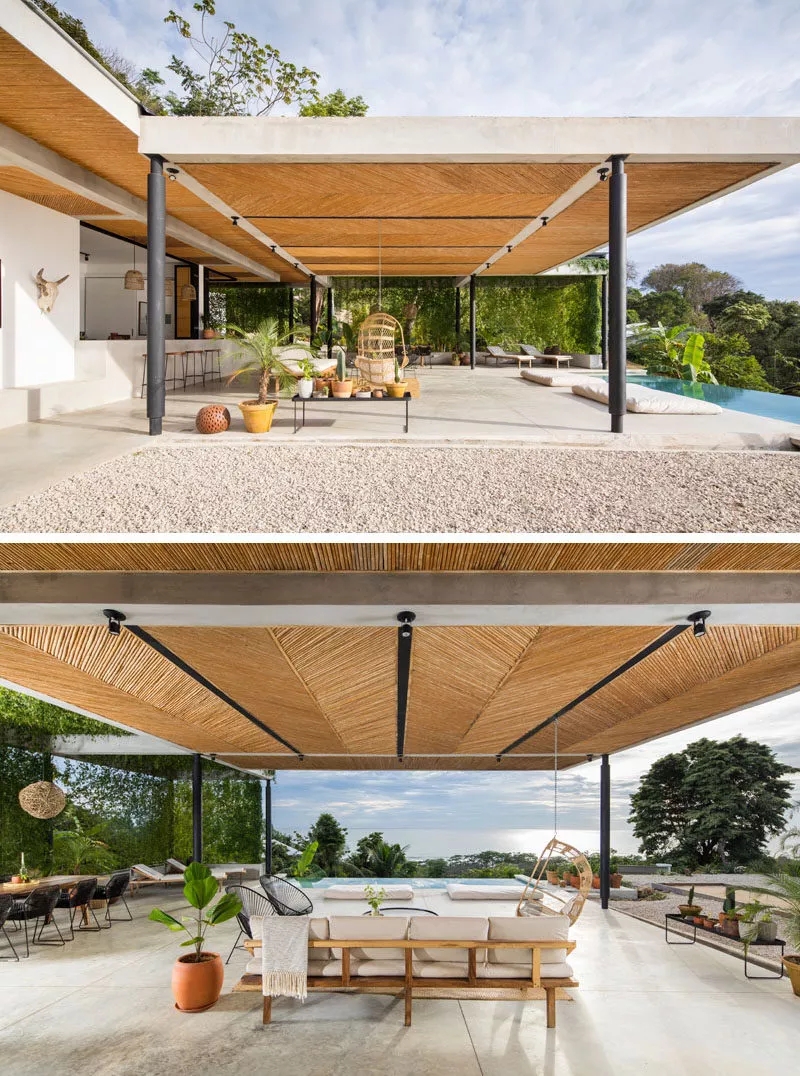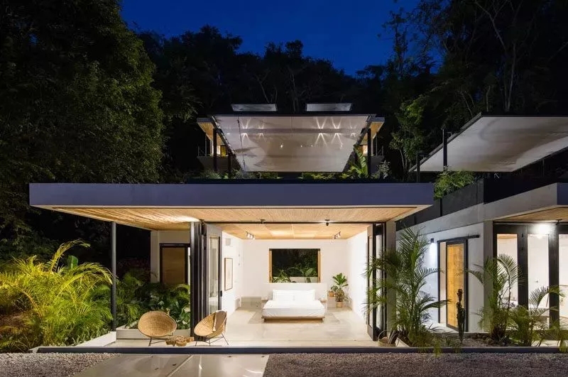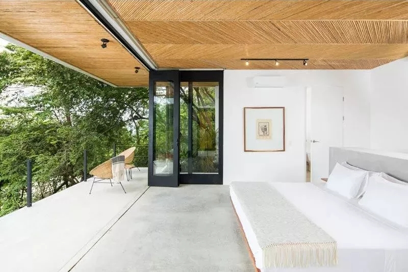 這是一家位于哥斯達黎加的小型精品酒店,酒店景觀環境的獨特之處在于,背后森林環繞,綠色撩人,前面是壯闊無邊的海景,居住其中讓人無法自拔。Mint Santa Teresa的中心是公共休息區,采用當地采購的材料,例如由“ca?abrava”(一種草)制成的天花板,并以復雜的魚骨圖案安裝。