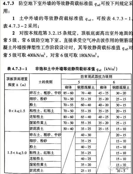 常規武器爆炸產生的水平等效靜荷載,見下表: