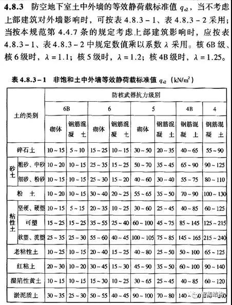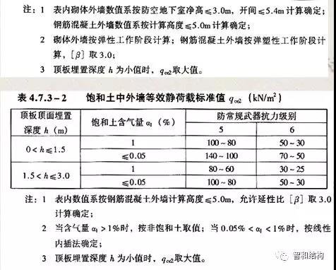 核規武器爆炸產生的水平等效靜荷載,見下表: