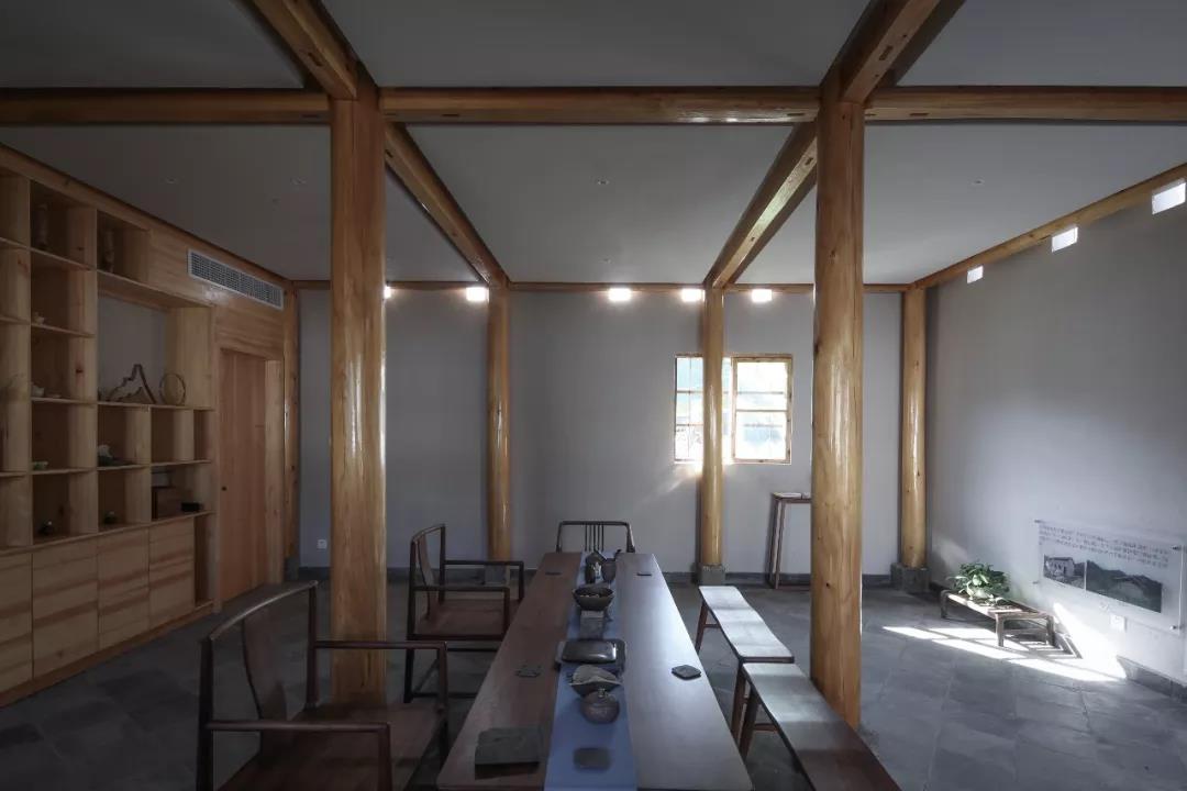 室內的整個木構體系重新設計。跟很多現代建筑不同,這間屋里梁和柱不再隱藏在墻體背后,而是顯露在外,構成整個空間的骨架,也更有氣韻。