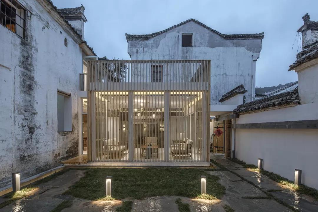 用3000塊玻璃磚砌了一整面馬頭墻,一改傳統馬頭墻的封閉感,里面木結構的虛影呈現在外部。