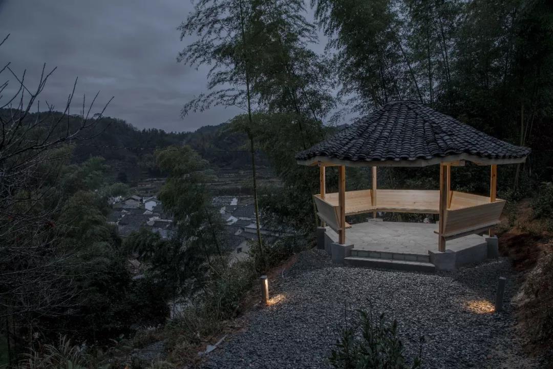 就在我們改造老房的同時,有很多破舊和廢棄的木材被拆下來。我們也把這些木料進行翻新,重新搭接成了一個小亭子,放在半山腰。它可以俯瞰整個村子。