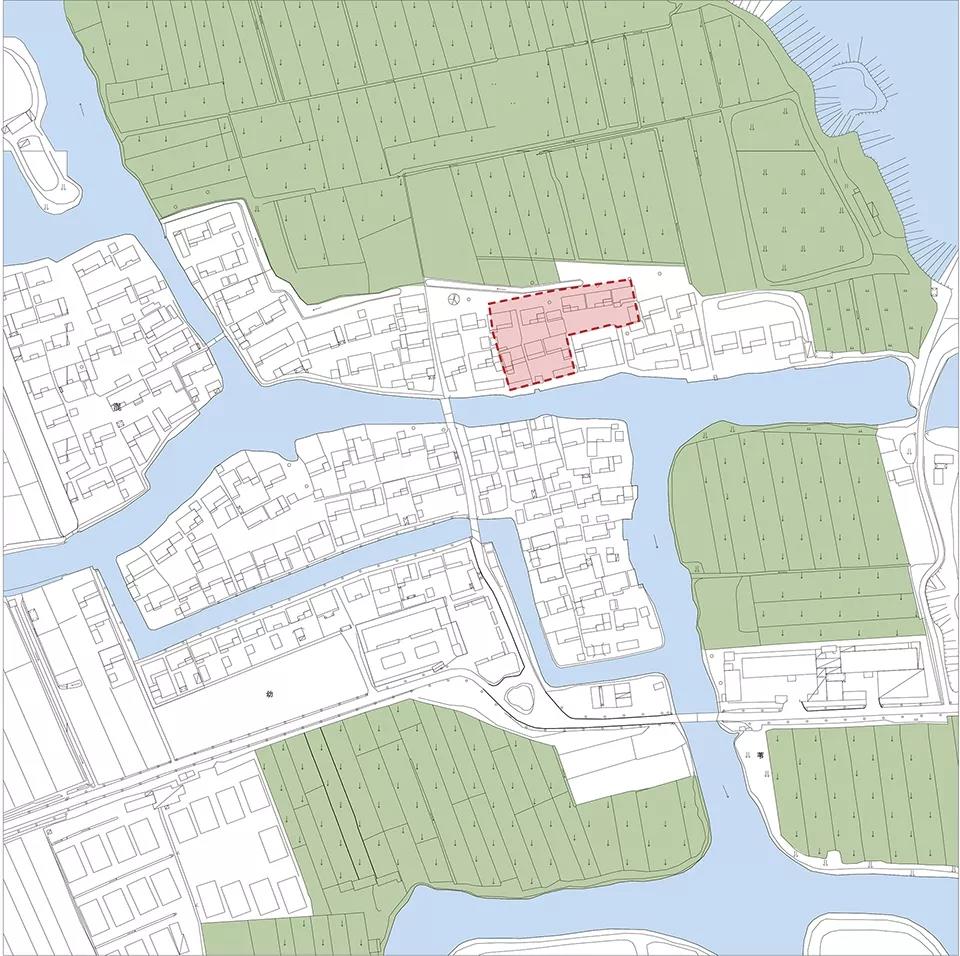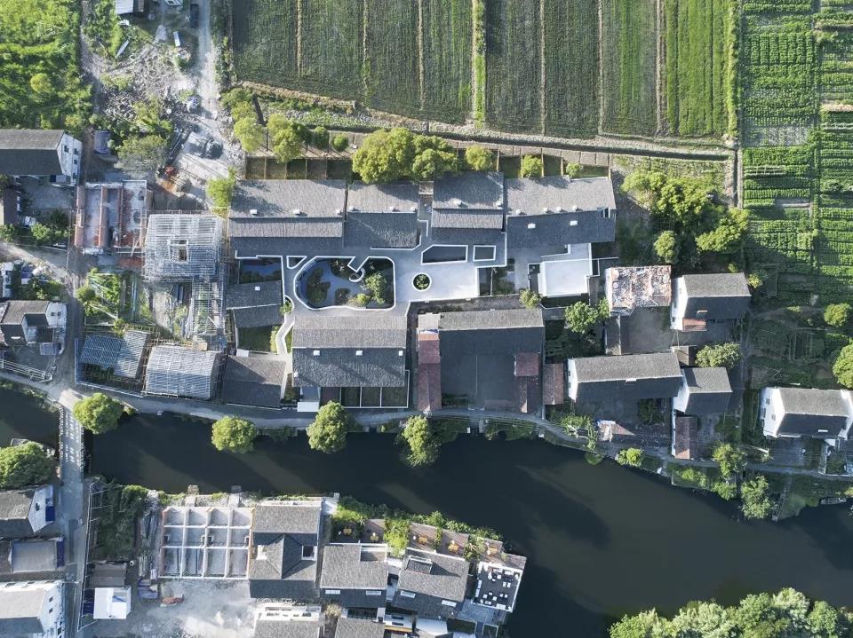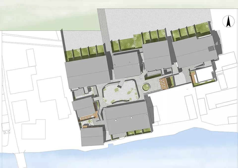 計(jì)家大院基地在計(jì)家墩村北部,可由村里主路直達(dá)?;啬蟼?cè)是一片開闊的水域,北側(cè)是一片香樟林,隔著香樟林就是大片的農(nóng)田?;貎?nèi)現(xiàn)存八棟舊房,但現(xiàn)存樓房從尺度和結(jié)構(gòu)上都不太能適應(yīng)新功能的需要,故而采取了整體新建的策略。