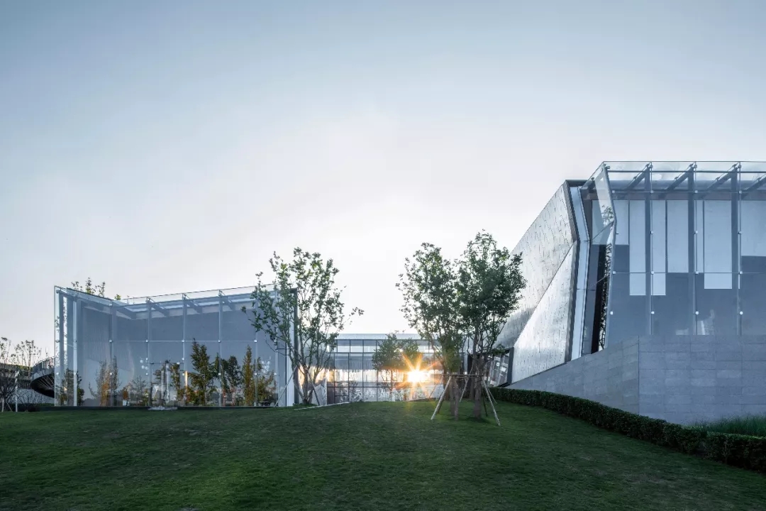 作為對環境的回應,建筑師將三個體量不同的盒子并列于山坡上,垂直于濱河道路,以期達到濱河景觀及遠山的最佳觀賞。通過建筑與環境的互塑共生,使遠山、河流、庭院、建筑重塑構成新的秩序,營造獨有坡地特征的建筑群落。