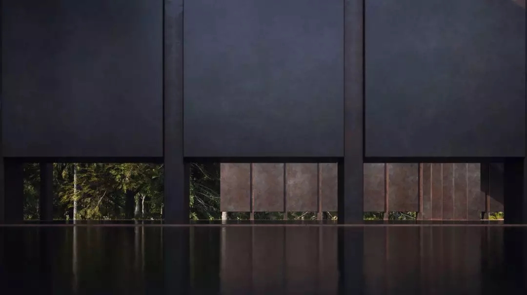 這座建筑運用了混凝土、耐候性鋼材、玻璃和水等元素。