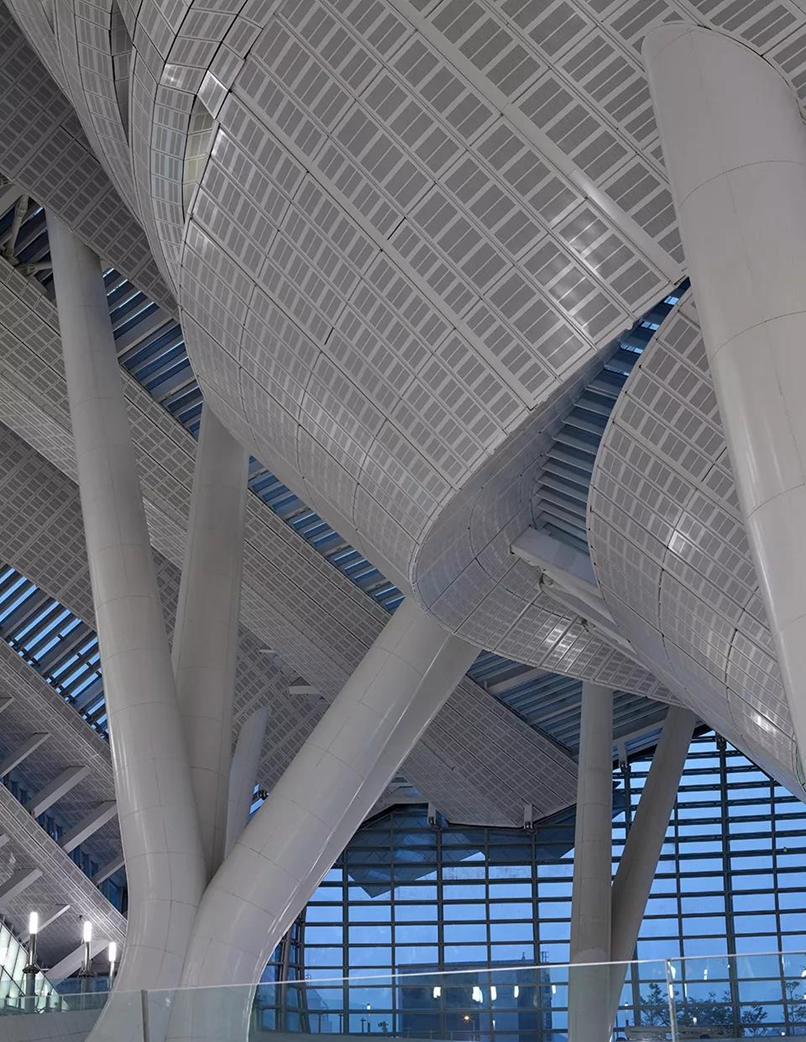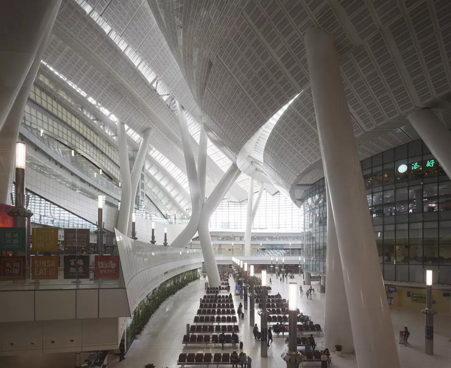 大廳的內部仿佛一片森林,傾斜的鋼柱支撐著巨大的仿佛懸浮在空中的屋頂,架置4,000塊玻璃面板,將自然光線帶入建筑內部,同時讓人們甚至從車站的下層也可以看到外面的城市景色。對于香港這座垂直城市而言,Bromberg的車站設計緊貼地面,令人耳目一新。建筑師熱切地使建筑體現出流動感,以反映這座國際化城市融合各種力量的理念。香港西九龍站的開放性和以人為本的包容性設計,將為這座城市光明而激動人心的未來奠定基礎。