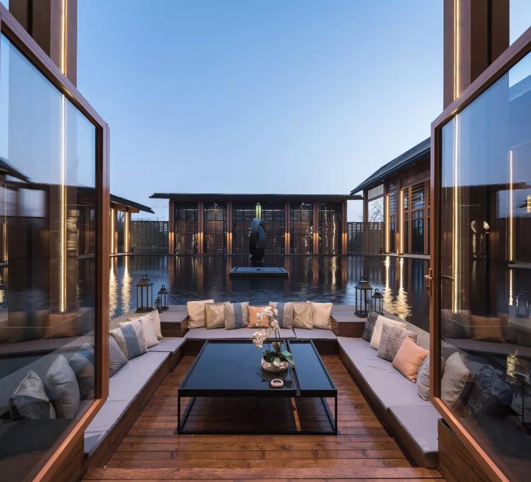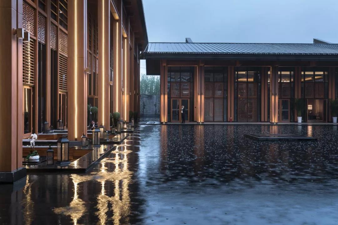 小雨淅瀝,光影婆娑,坐于廊下的親水平臺欣賞這朦朧雨景,一種無法言喻的怡然與愜意躍于心間。