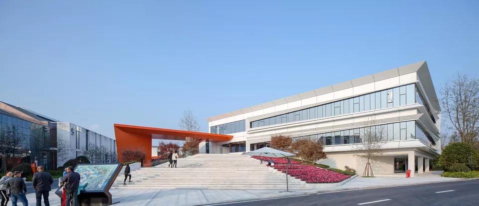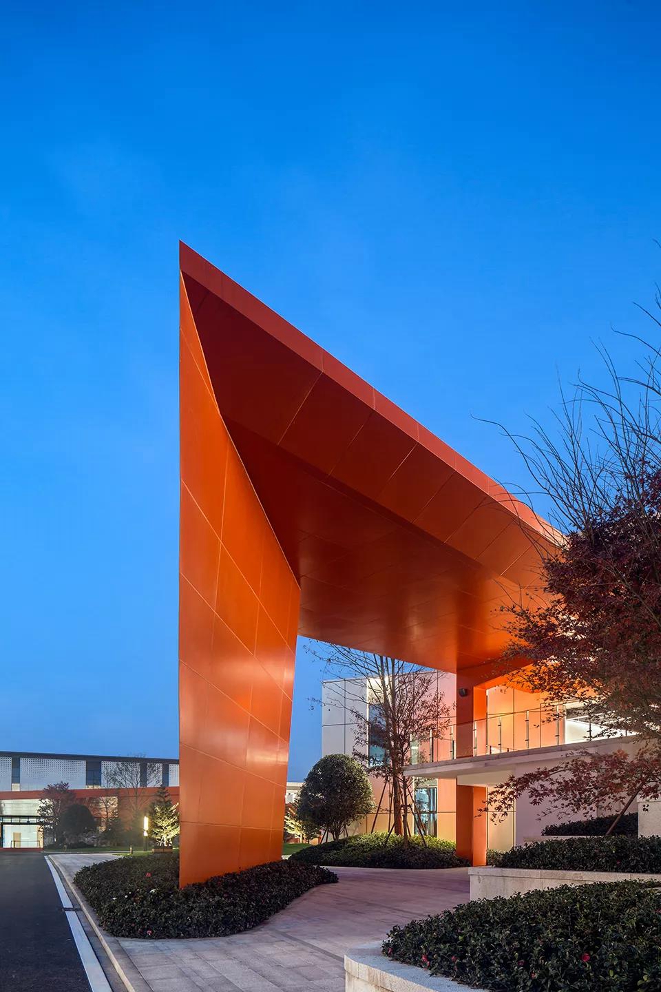項目作為世界設計大會的永久會址,是工業設計重要的國際交流平臺。通過貫穿整個片區的風雨連廊的設計,寓意工業設計的整合,國際交流的紐帶,實現對人流的引導。而鮮明的橙色線條,與園區大面積立面元素相呼應,則為整個園區注入了活力。