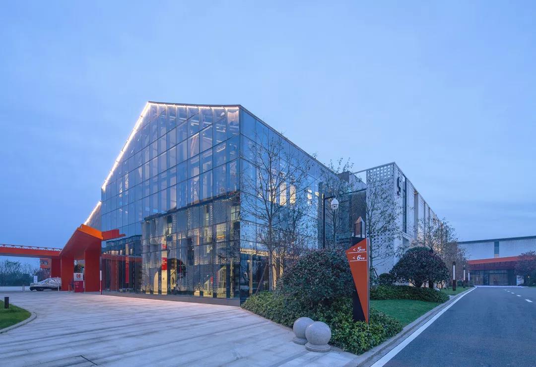 不同于原有廠房所訴求工業屬性的遺存,新建廠房的創造更注重尋求形意的表達。衍變自良渚文化的典型器物玉琮,取自其橫向線條和轉折關系,解構重建賦予立面,起到不同的遮陽作用。同時,用粗細變化的彩釉玻璃,營造建筑立面的光澤變化,表現建筑如玉般細膩的質感,展示良渚古老的文化歷史。