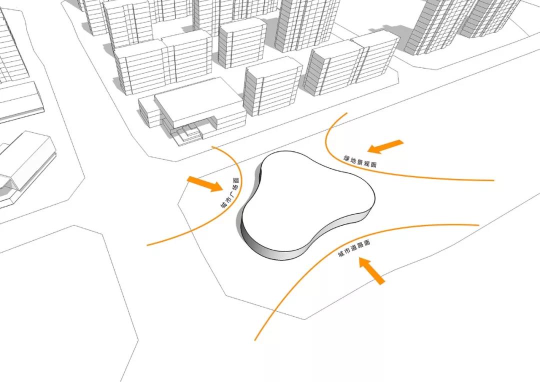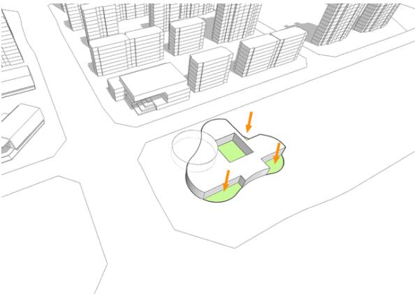 向集群中心退讓,形成城市廣場,吸引人活動 ©曾江河