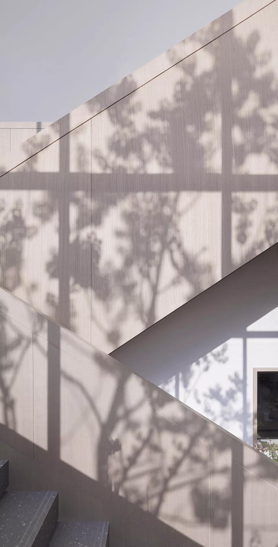 黑白灰的運用增強建筑的雕塑感,點綴褐色帶來溫度感 ©蘇圣亮