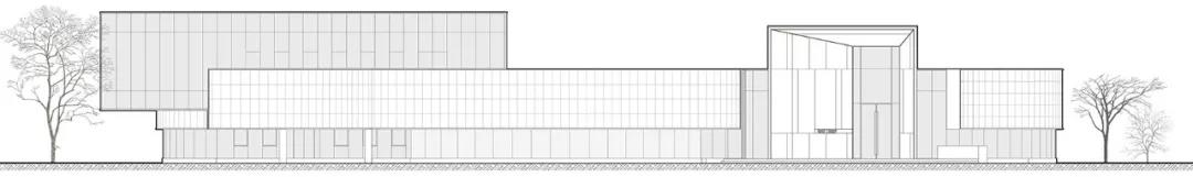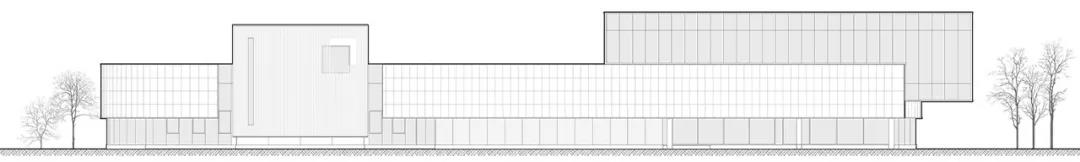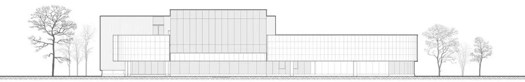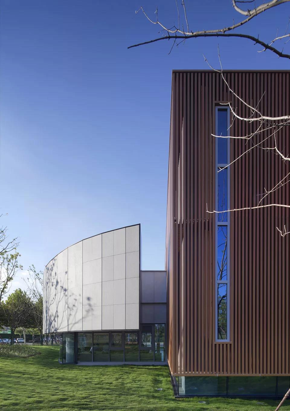 南側立面形象,面向快速路,以舒展體量為主,點綴木質 ©曾江河