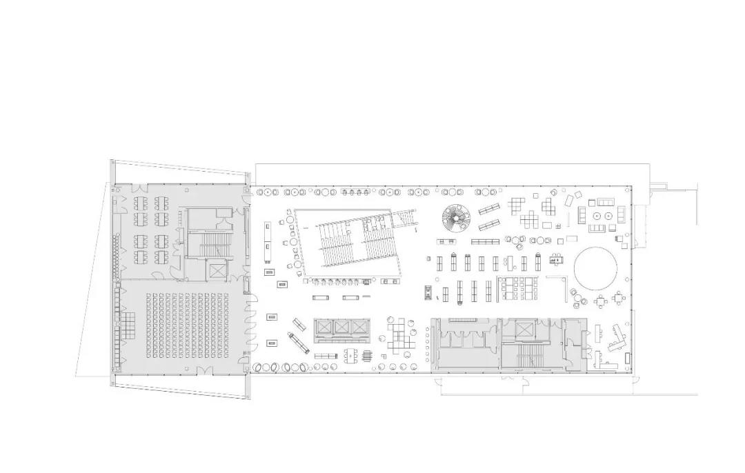 為激活大教堂廣場上的市民活動,二層是一個為市民討論、共享及慶祝設計的“社區(qū)舞臺”。它是一個嵌在圖書館中的突出體量,并處于連接廣場的最佳視線位置。圖書館的上三層,包含了藏書庫、職員辦公室、會議室、自習室、制作工作室、計算機房、音樂工作坊及其他眾多功能空間。圖書館的二層同時也是一家以Ngāi Tahu 部落祖輩傳統(tǒng)命名的兒童天地 Ngā Purapura 所在的地方,包含一個兒童閱讀洞穴及一間活動室。
