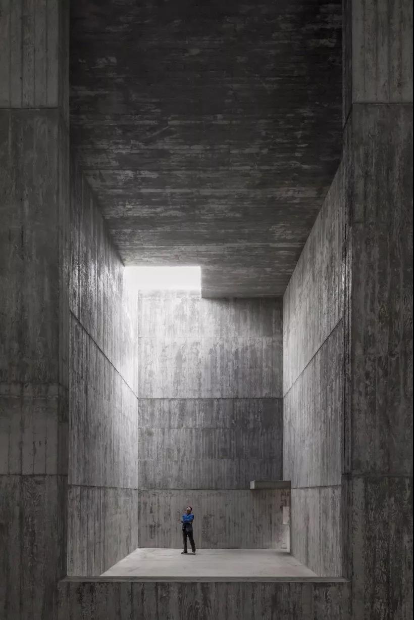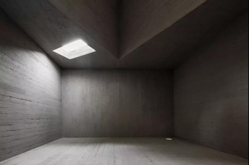 戲劇性的內部空間通過清水混凝土材質和洞穴狀的造型界定出來
