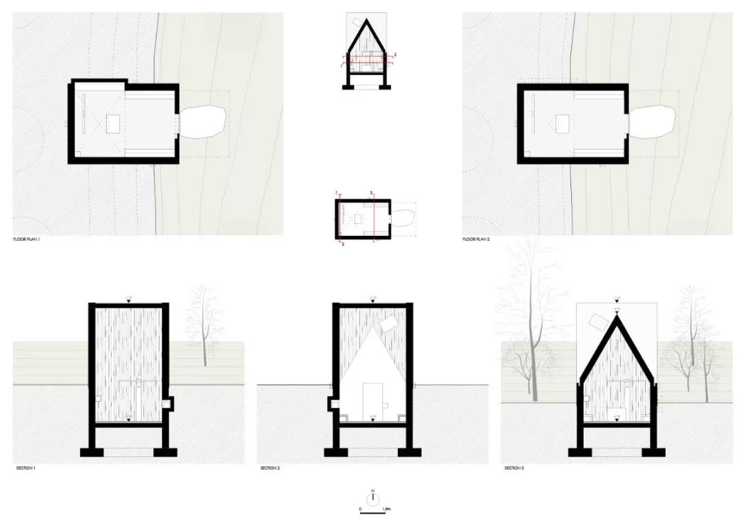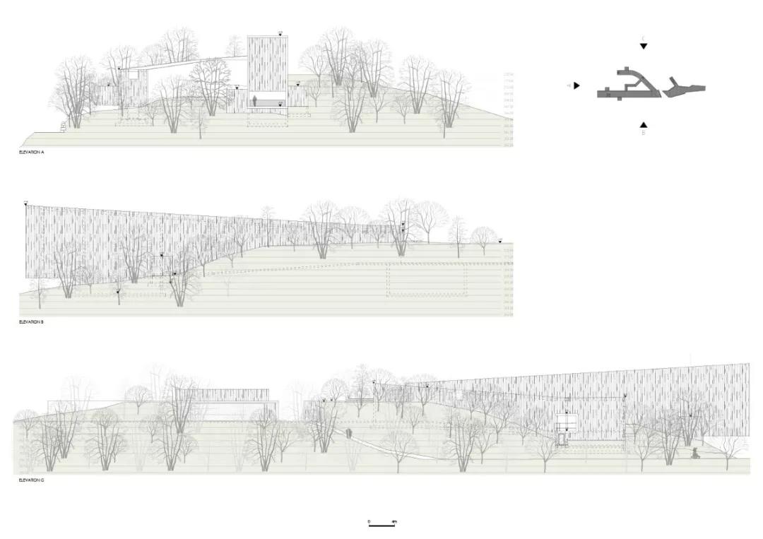 該建筑所在的區位風景卓然,四周以林地環繞。參觀者從北側進入場地內部,迎接他們的是設立在獨立體量的圖書館。