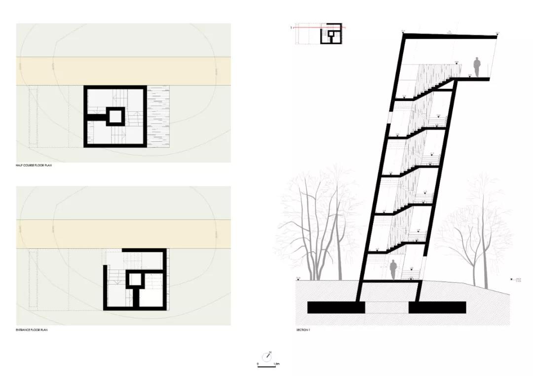 這座混凝土建筑將被安置在能夠俯瞰下面深谷的小山上。沿塔樓向上的游客在最終到達南側的景觀臺之前可以在行走過程中透過窗戶時快速看一眼外面的世界。當重新向地面進發時,向下的空間形式會引發人們的自我反省,” 卡斯塔涅拉說道。幾乎未作任何修飾的清水混凝土表面與造型的純粹感形成對比。盡管塔的外觀很簡單,但它的本質是復雜的。其功能就是建筑的本質。