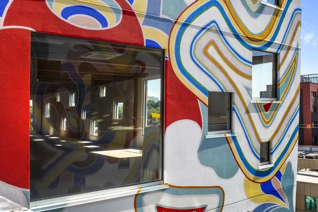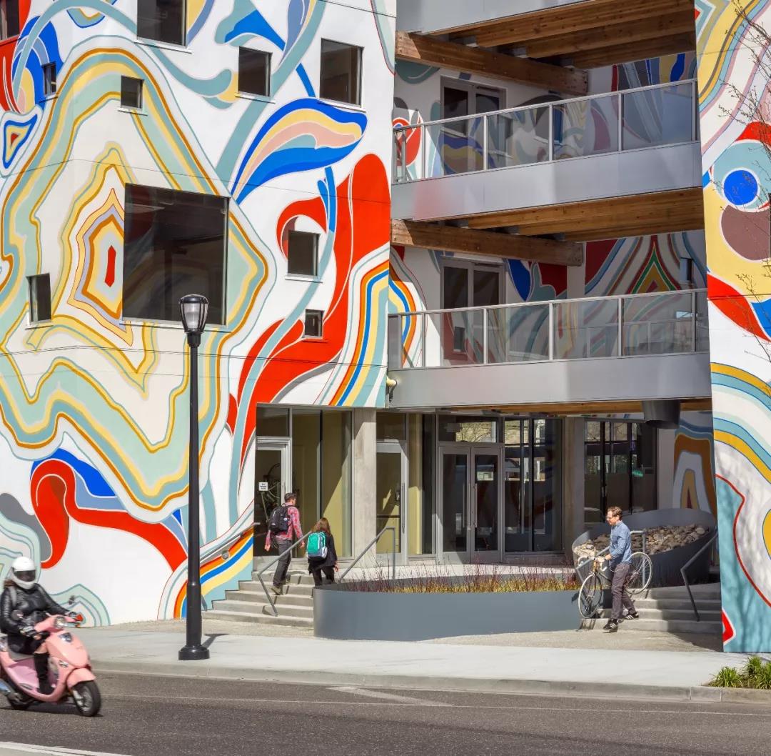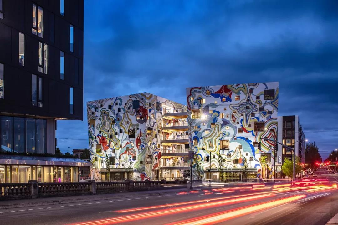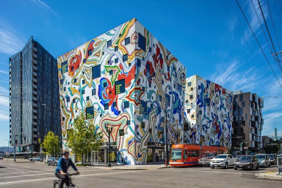 這棟多功能寫字樓名為“金發啞鈴”,是 FFA 和 Guerrilla 合作開發的項目,由詹姆斯·簡(James Jean)創作。這棟帶有零售層的寫字樓位于伯恩賽德橋頭堡開發項目的中心地帶,是波特蘭不少有趣的新建筑的所在地。