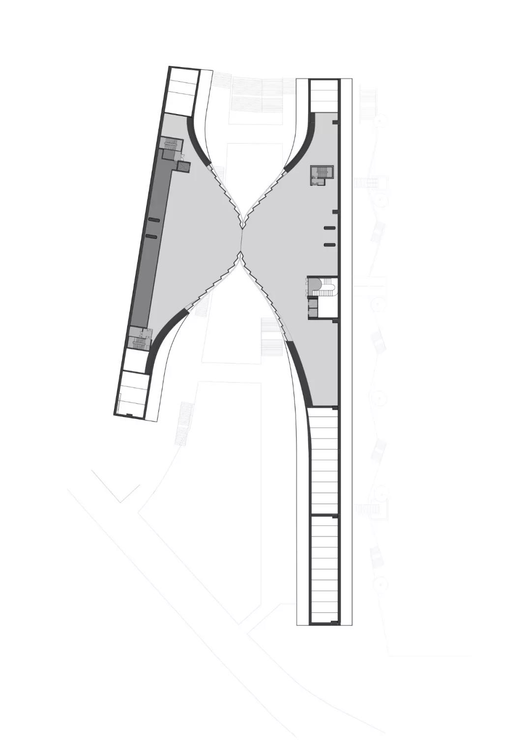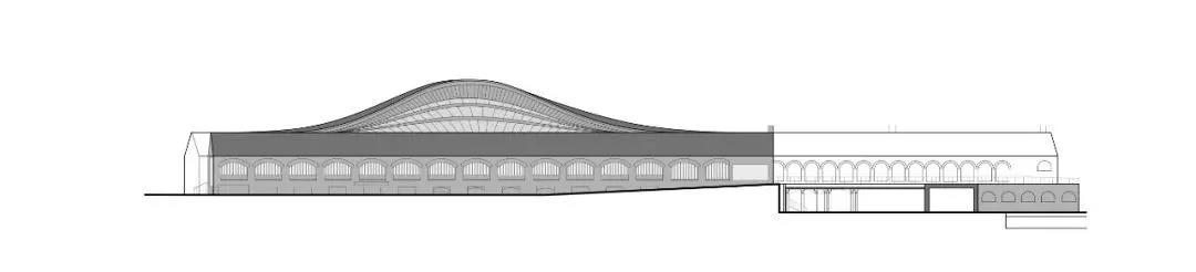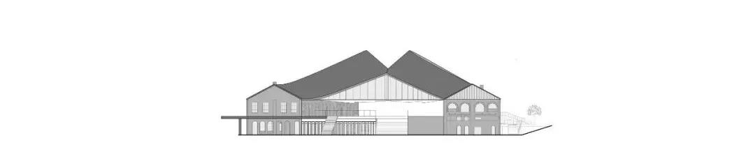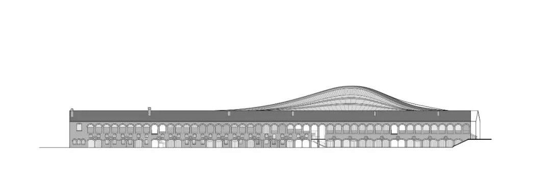 我們擴展了兩棟建筑的人字形屋頂,讓它們在空中交匯。這個懸空的流線型屋頂由一個全新的、高科技的獨立式結構作為支撐,從而能與原有的建筑結構完美的融合在一起。
