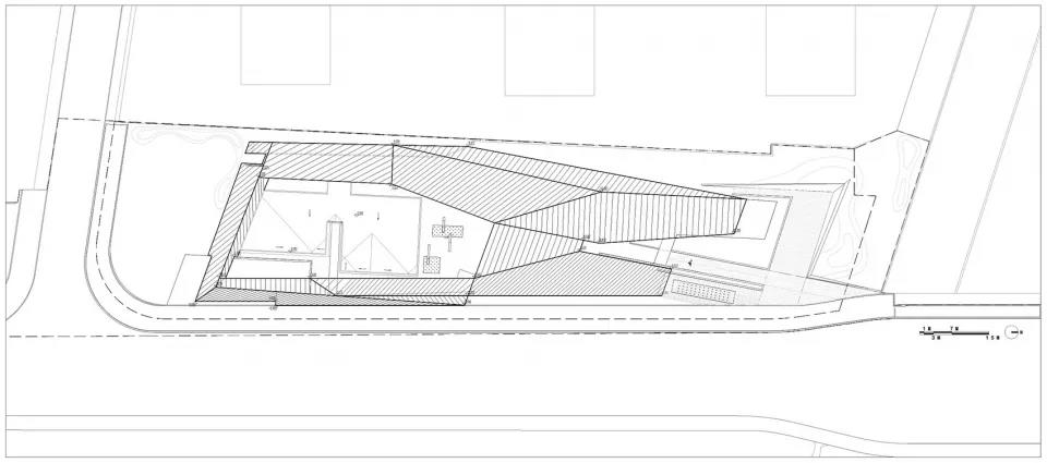 翻折手法消解了墻和屋頂?shù)慕缦?/span>