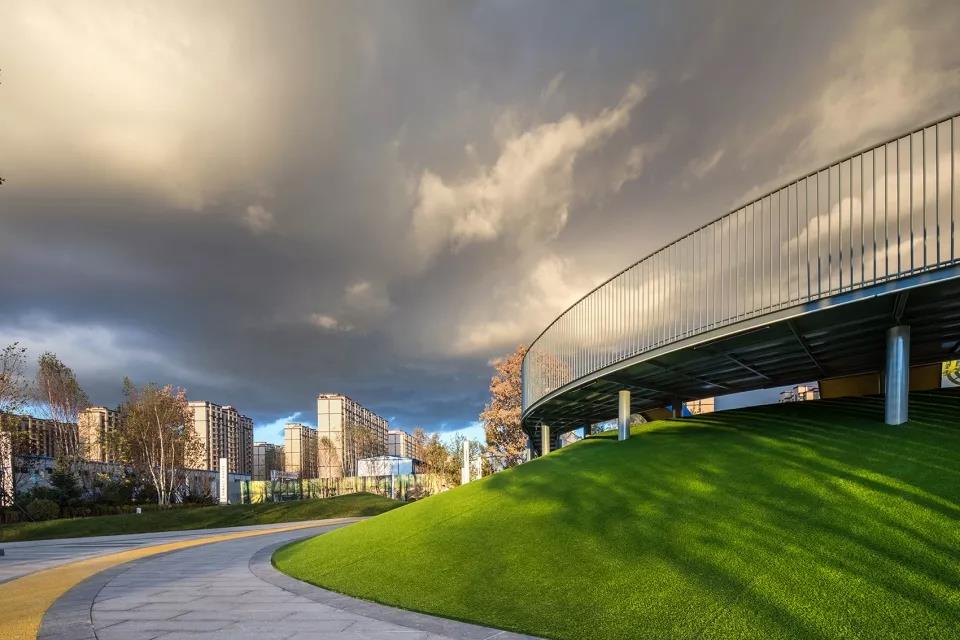 設計地塊位于長春南部新城,為長春萬科的市政代建公共綠地。周邊多為新建住宅和新建建筑,缺少街區型公共開放空間。基地南側為售樓處,東南側為商鋪。長春作為森林城市,山谷縱橫,森林繁茂。優美的自然環境成為我們的設計靈感來源。通過地形塑造、空間圍合,讓人感受到高高低低不同的變化。